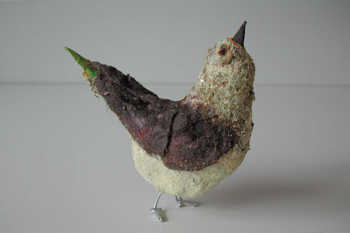 Aus der Fantasie kreierte Wesen einer geheimnisvollen Vogelwelt, die als Interpreten überzeugend menschliche Charaktere in Mimik und Gestik zitieren. Die Darstellung der Figuren wirkt vertraut und klingt dennoch nach, wie ein Gespräch unter Freunden, die sich etwas zu erzählen haben. Als Solitär oder als Paar, diese Figuren zeigen Charakter.