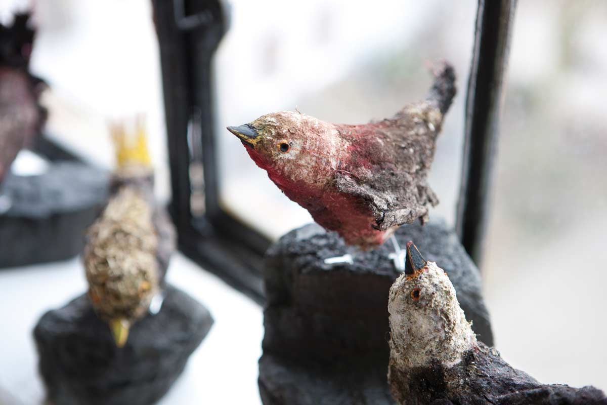 Die Poeten: Aus der Fantasie kreierte Wesen einer geheimnisvollen Vogelwelt, die als Interpreten überzeugend menschliche Charaktere in Mimik und Gestik zitieren. Die Darstellung der Figuren wirkt vertraut und klingt dennoch nach, wie ein Gespräch unter Freunden, die sich etwas zu erzählen haben. Als Solitär oder als Paar, diese Figuren zeigen Charakter.